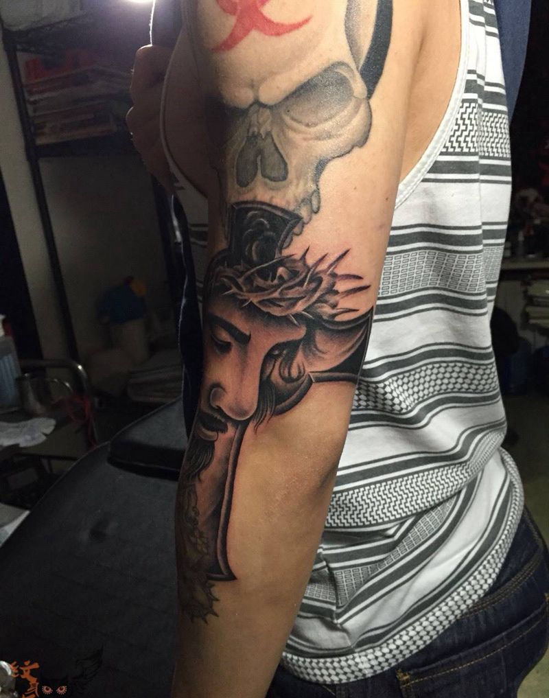 当前位置: 首页 >北京市纹身店-涅磐刺青纹身图案>耶稣纹身图片_肖像清新习俗传统欧美写实人物宗教背部手臂纹身图案