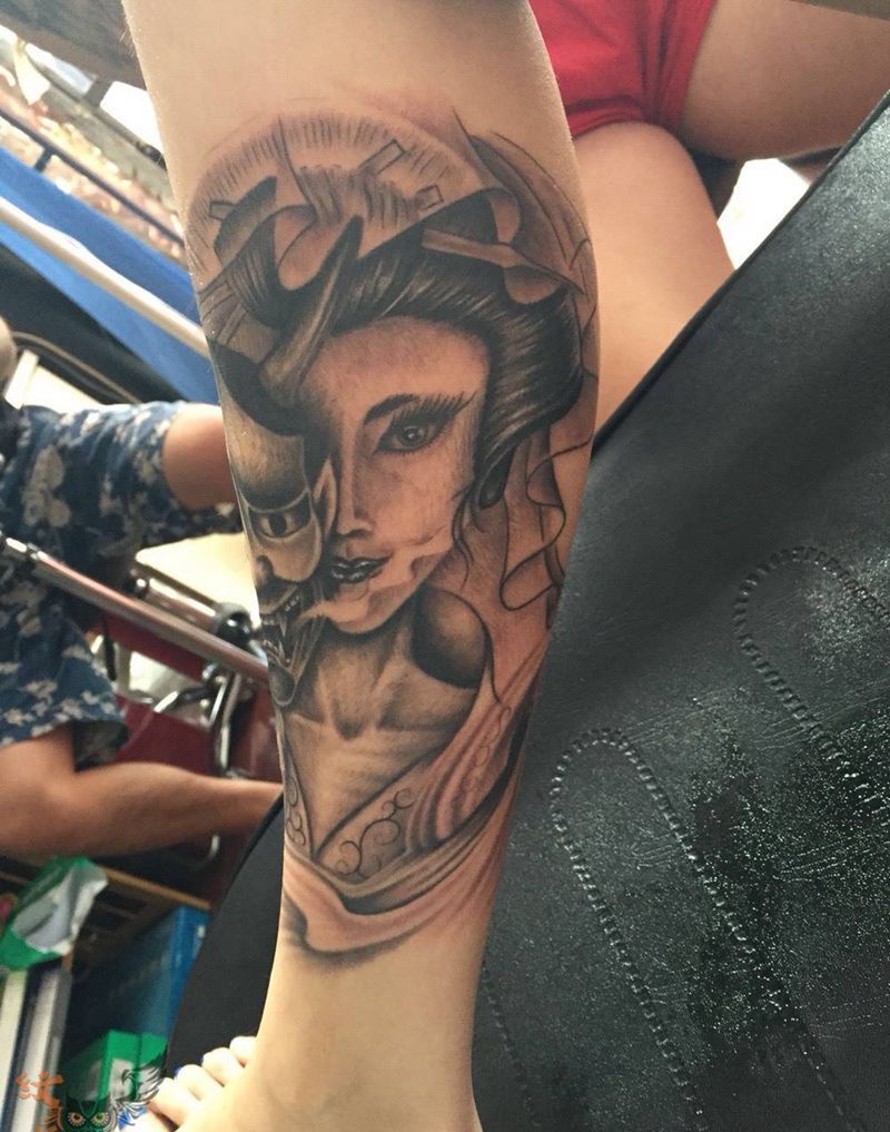 艺伎&般若纹身图片_清新肖像欧美传统写实人物鬼神宗教腿部脚部纹身图案