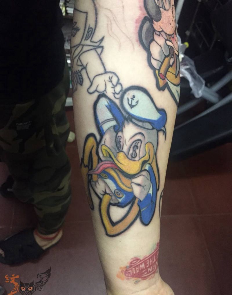 唐老鸭 高菲纹身图片_插画肩部腰部手臂国画肖像欧美动物原创情侣纹身图案