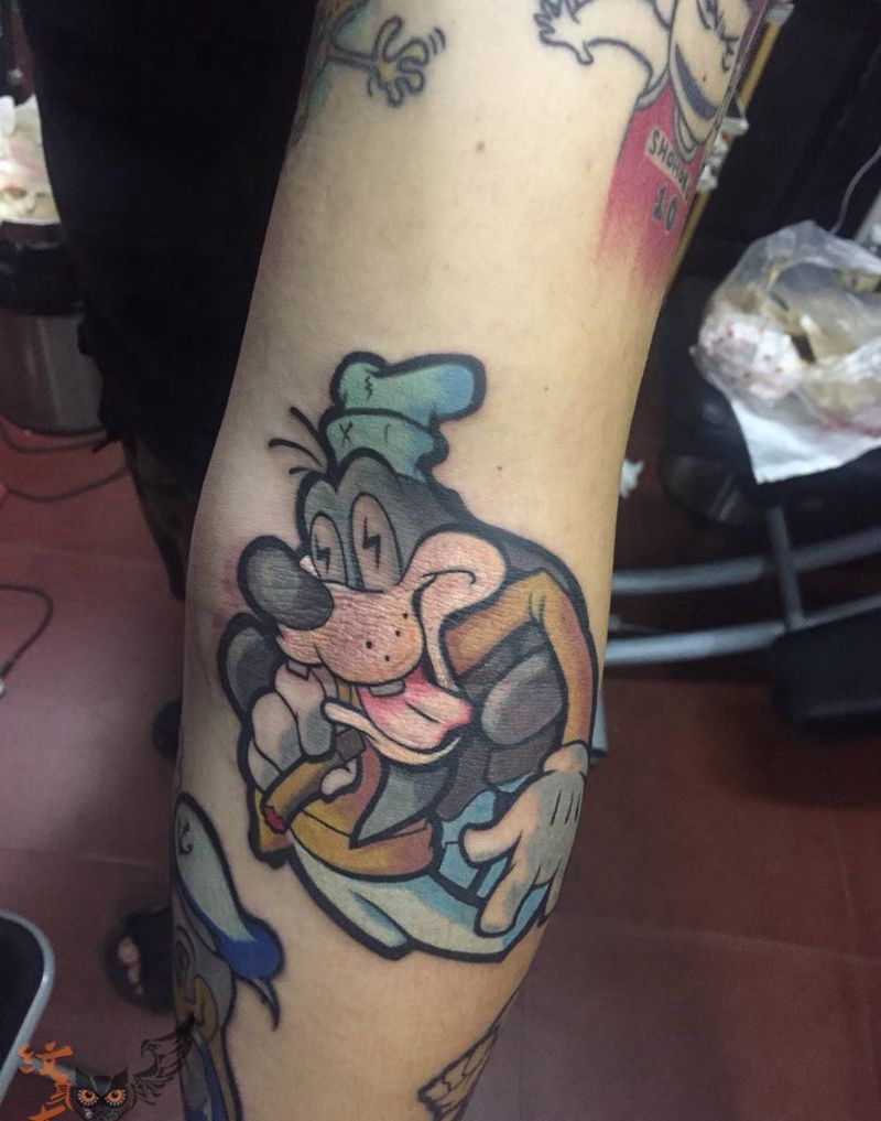 唐老鸭 高菲纹身图片_插画肩部腰部手臂国画肖像欧美动物原创情侣纹身图案