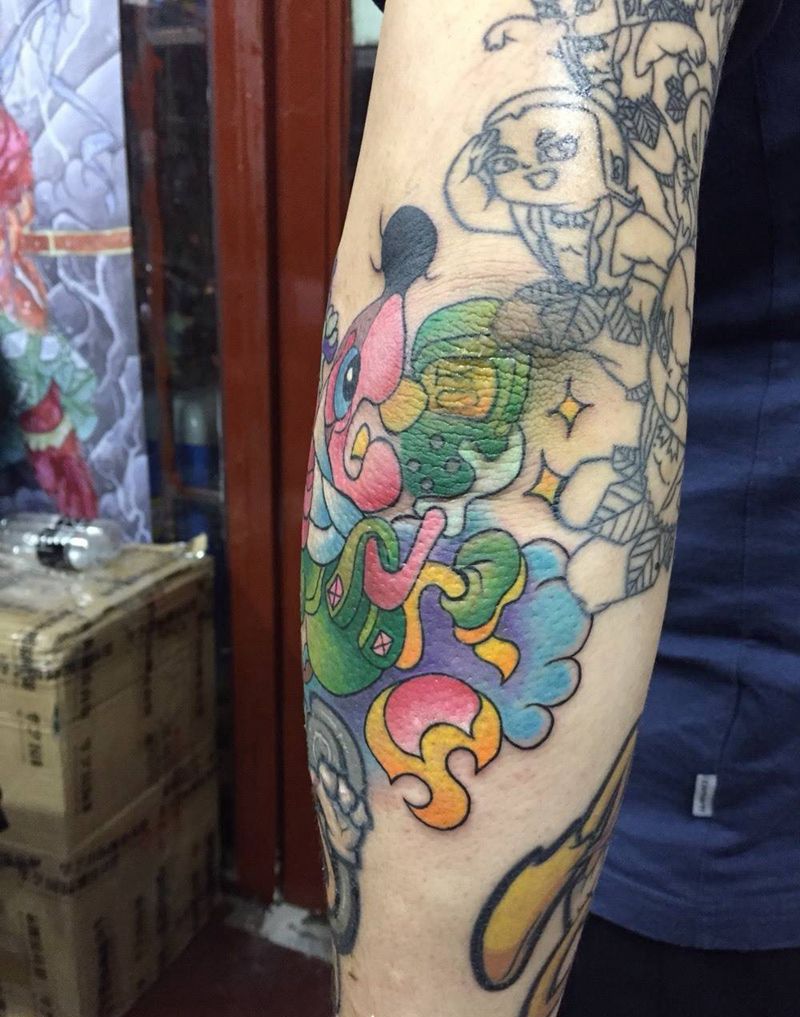 • T网红王老大花腿龙纹身图片_腿部新传统纹身图案