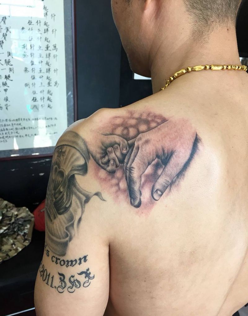 当前位置: 首页 >北京市纹身店-涅磐刺青纹身图案>小拉大纹身图片_手稿颈部手臂欧美肖像写实人物原创静物宗教纹身图案