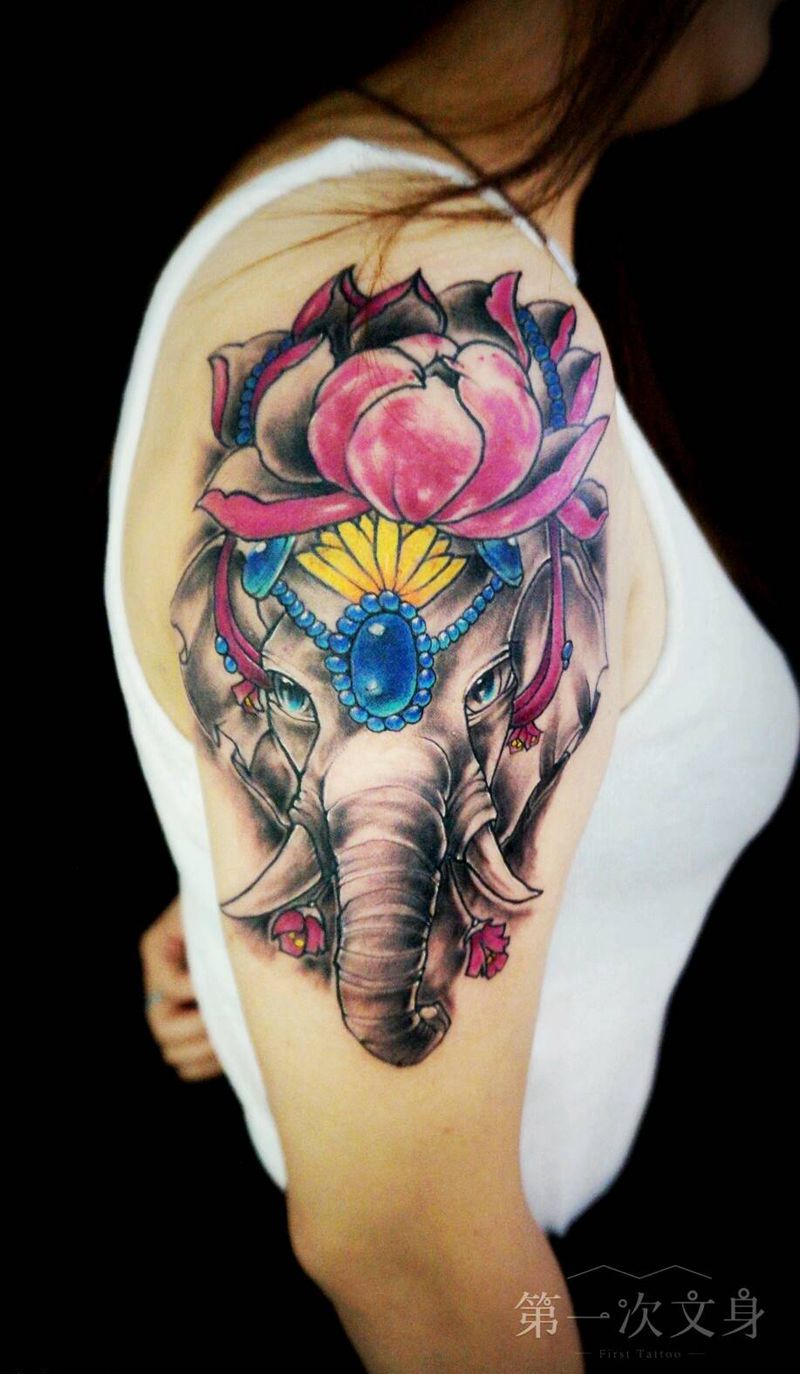 对象纹身图片_肩部传统清新动物成品纹身图案