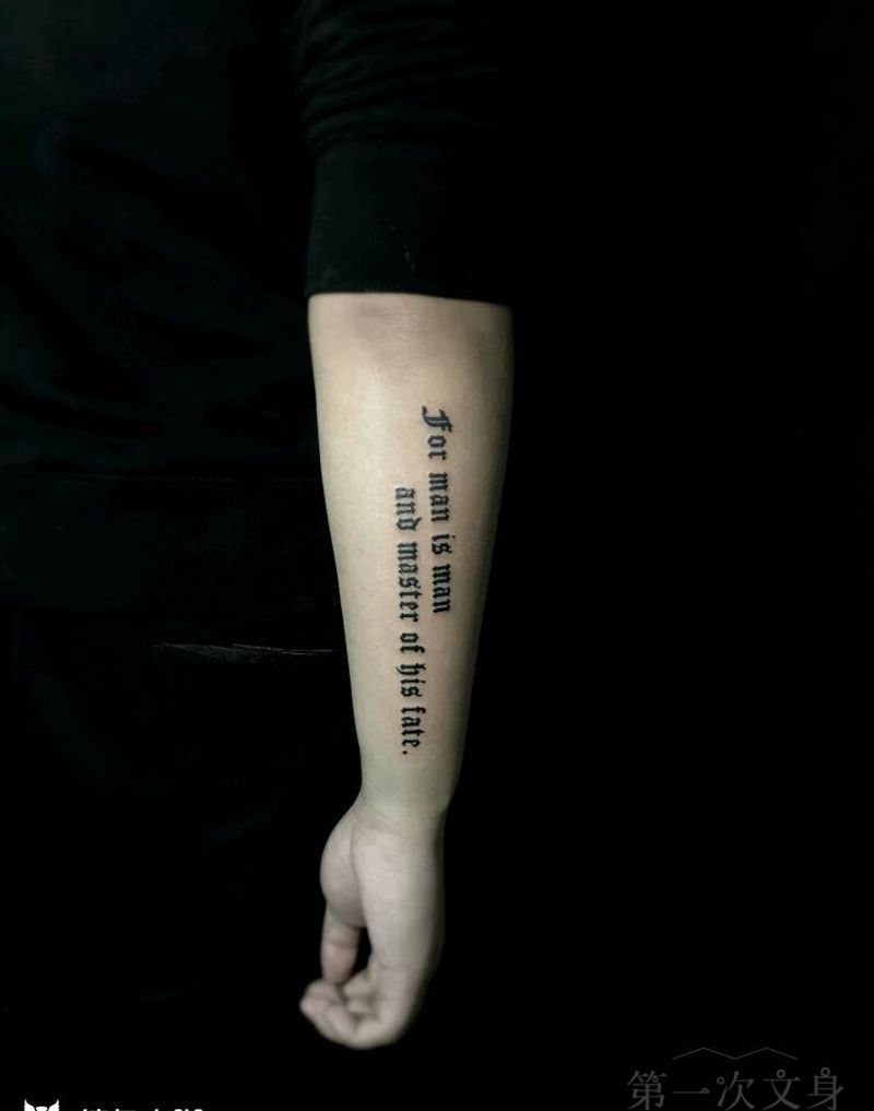 当前位置: 首页 >北京市纹身店-第一次文身纹身图案>做自己的主人纹身图片_手臂欧美字符原创成品纹身图案