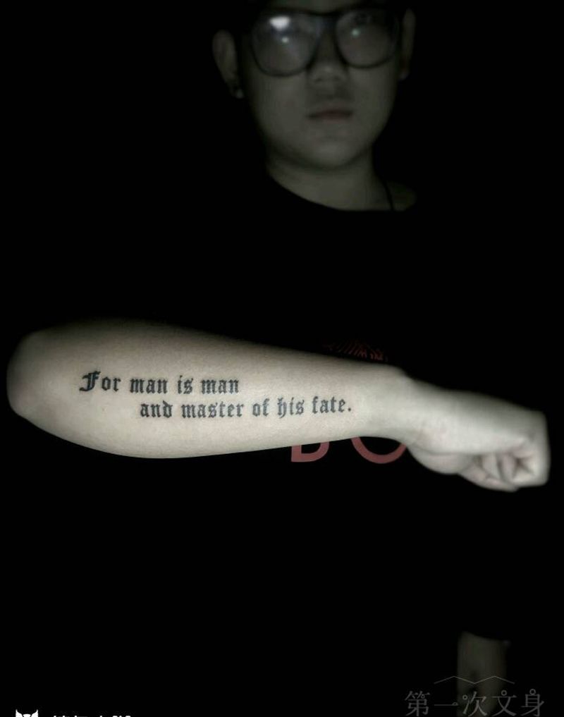 当前位置: 首页 >北京市纹身店-第一次文身纹身图案>做自己的主人纹身图片_手臂欧美字符原创成品纹身图案
