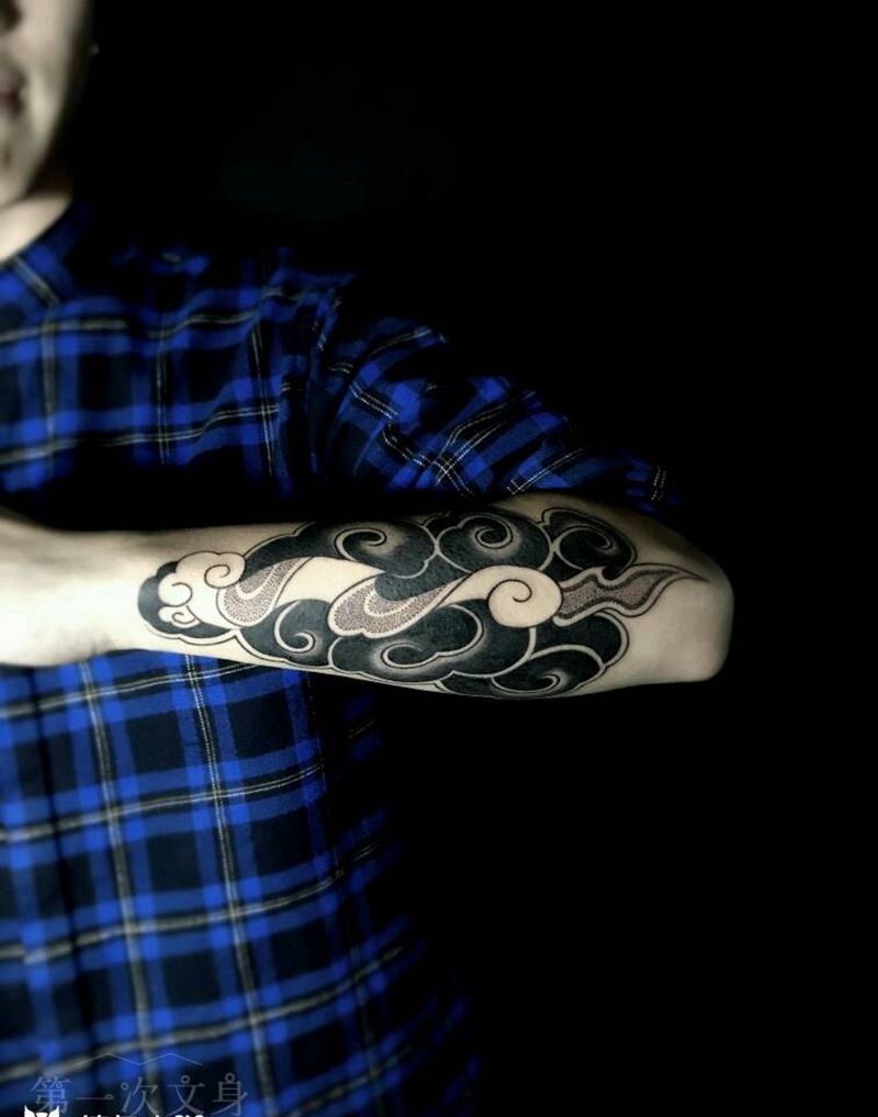 当前位置: 首页 >北京市纹身店-第一次文身纹身图案>祥云纹身图片_手臂腿部传统静物图腾成品纹身图案