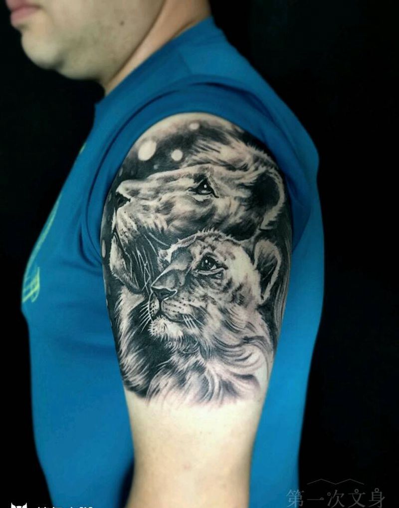 对狮纹身图片_背部手臂腿部欧美写实动物成品纹身图案