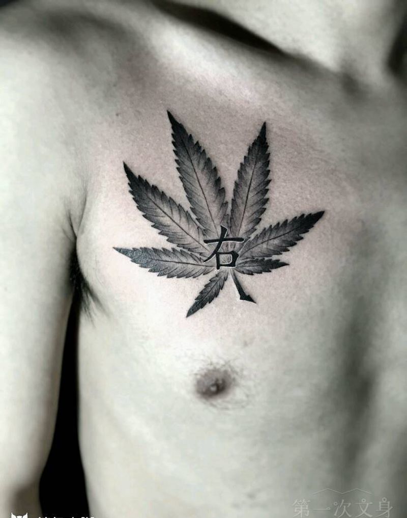 大麻叶纹身图片_胸部背部写实植物原创成品纹身图案
