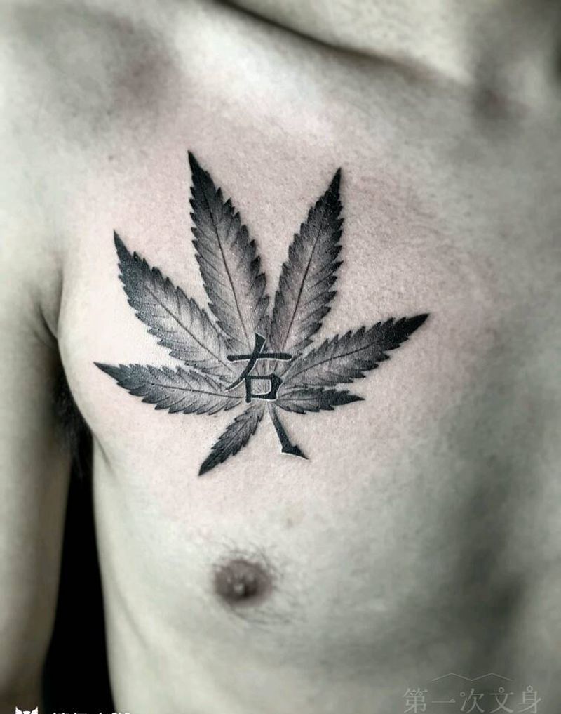 大麻叶纹身图片_胸部背部写实植物原创成品纹身图案