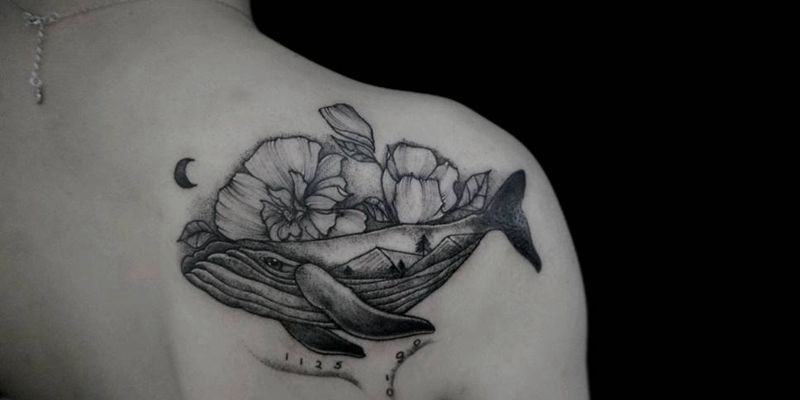 • 女性大花胸纹身_43张霸气漂亮的女性大花胸纹身图案作品