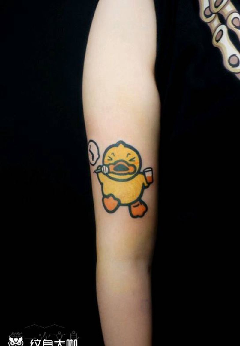 小黄鸭纹身图片_手臂腿部欧美动物原创成品纹身图案