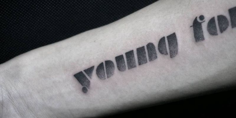 当前位置: 首页 >北京市纹身店-第一次文身纹身图案>young for you纹身图片_背部手臂脚部欧美字符点刺成品纹身图案