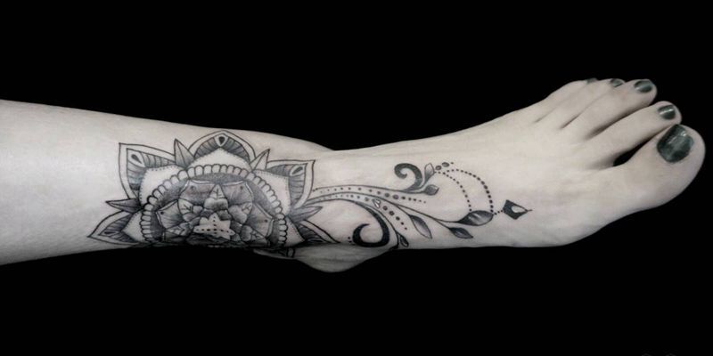 脚踝烫伤遮盖纹身图片_肩部手臂腿部欧美几何成品纹身图案