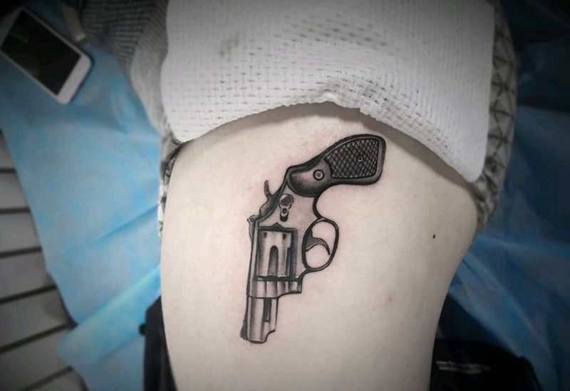 当前位置: 首页 >北京市纹身店-第一次文身纹身图案>手枪纹身图片_腰部背部手臂腿部欧美写实静物枪成品纹身图案