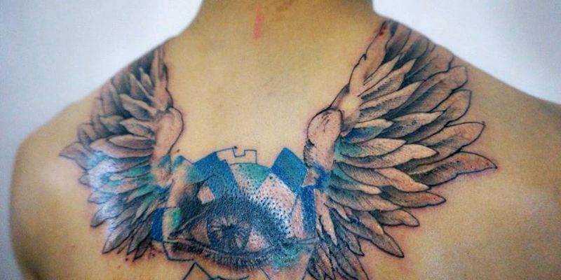 会飞的眼睛纹身图片_背部欧美动物原创眼睛翅膀成品纹身图案