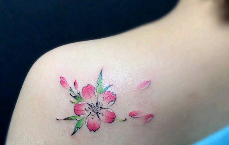 当前位置: 首页 >北京市纹身店-第一次文身纹身图案>桃花纹身图片_肩部背部手臂腿部欧美写实植物桃花成品纹身图案