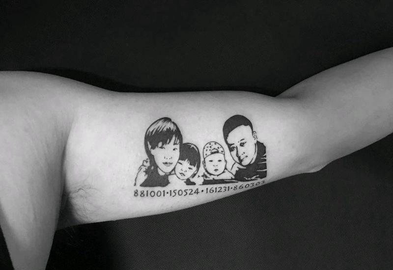 • T家庭图,一家四口生日纪念!纹身图片_手臂纹身图案