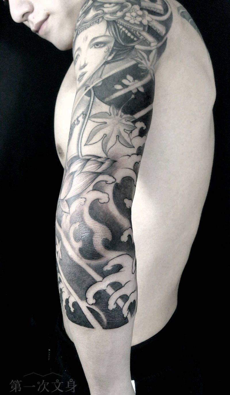 当前位置: 首页 >北京市纹身店-第一次文身纹身图案>艺伎荷花七分袖纹身图片_腰部背部手臂腿部传统几何荷花艺伎成品纹身图案