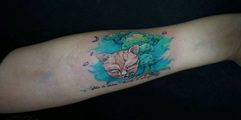 当前位置: 首页 >北京市纹身店-第一次文身纹身图案>希望梦境里你可以安详纹身图片_肩部背部手臂腿部清新动物猫成品纹身图案