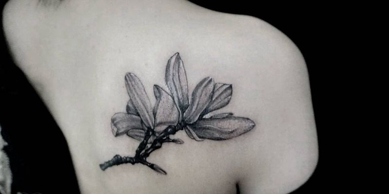 玉兰纹身图片_背部手臂腿部欧美植物原创玉兰成品纹身图案