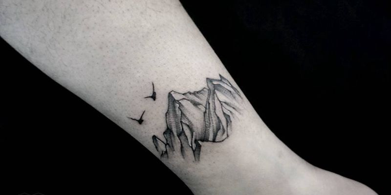 山水情侣纹身图片_手臂腿部欧美情侣浪山成品纹身图案