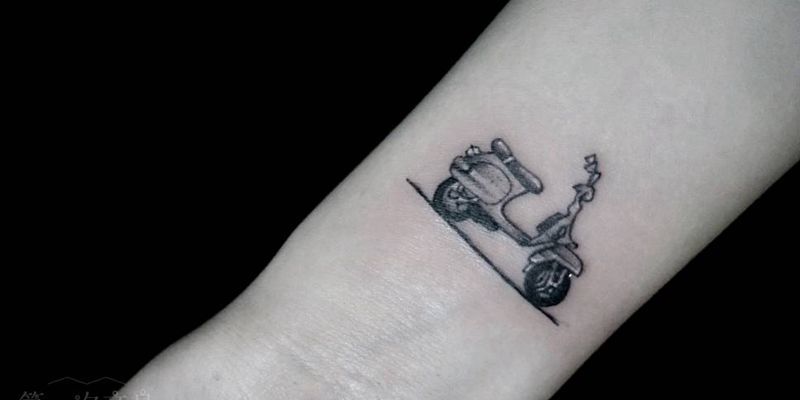 小摩托纹身图片_手臂腿部欧美静物摩托成品纹身图案