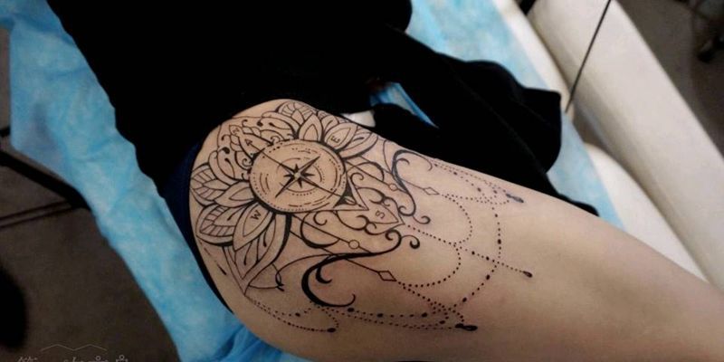大腿mandala纹身图片_腰部背部臀部手臂腿部欧美梵花成品纹身图案