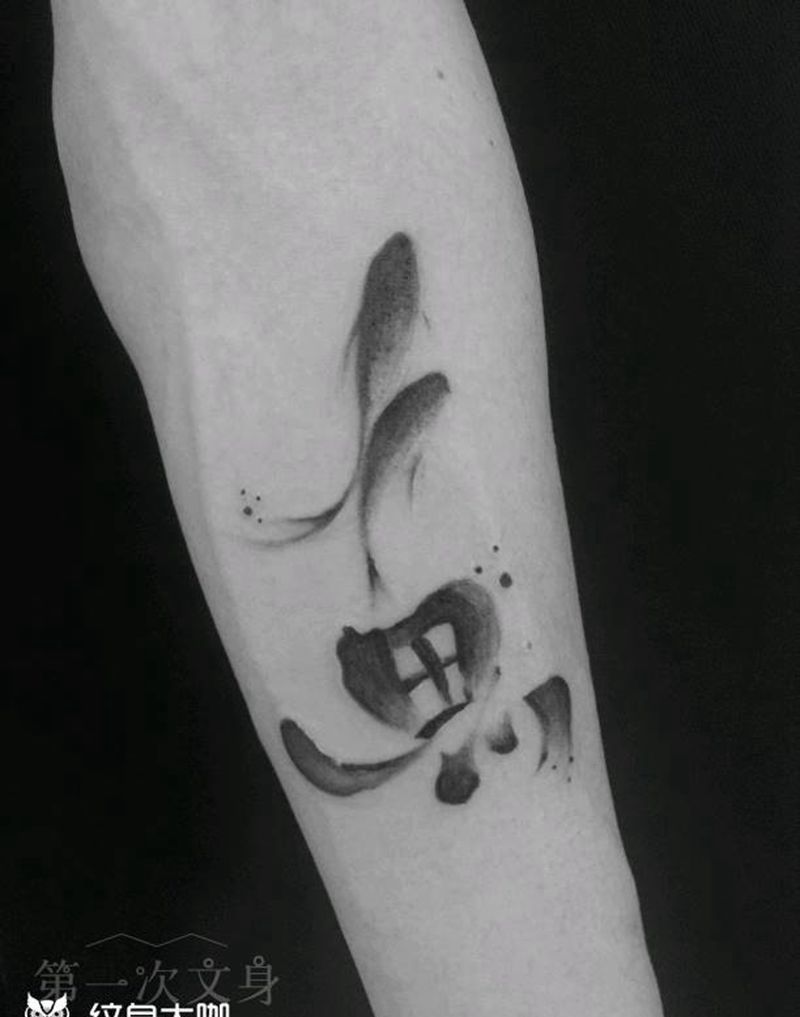 当前位置: 首页 >北京市纹身店-第一次文身纹身图案>鱼纹身图片_手臂传统国画字符鱼书法成品纹身图案