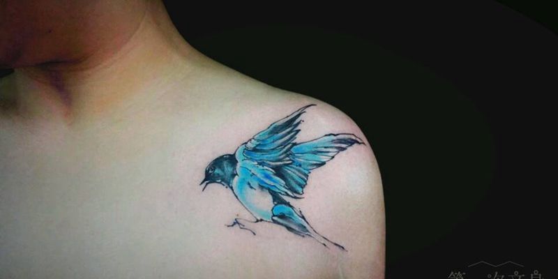 飞鸟纹身图片_肩部欧美清新动物原创成品纹身图案