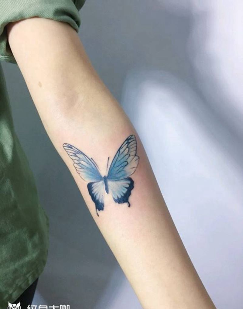 小蝴蝶纹身图片_手臂水彩纹身图案