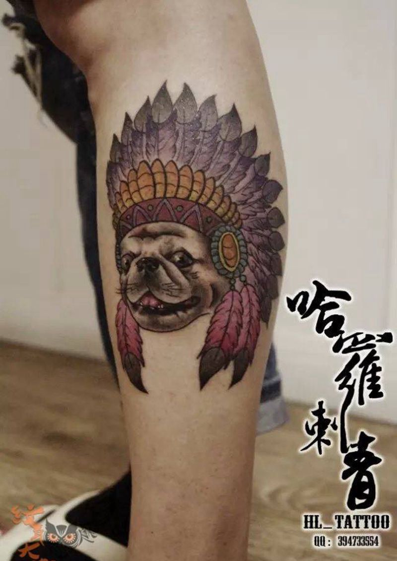 • T包小腿吹火男+阿多福纹身图片_腿部老传统新传统吹火男阿