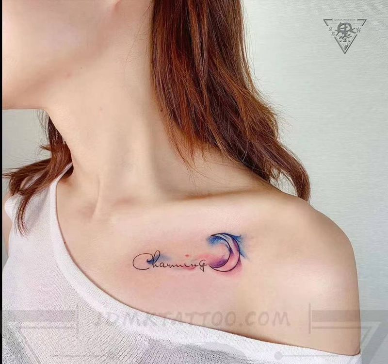 纹身/刺青纹身图片_胸部水墨水彩锁骨纹身纹身图案