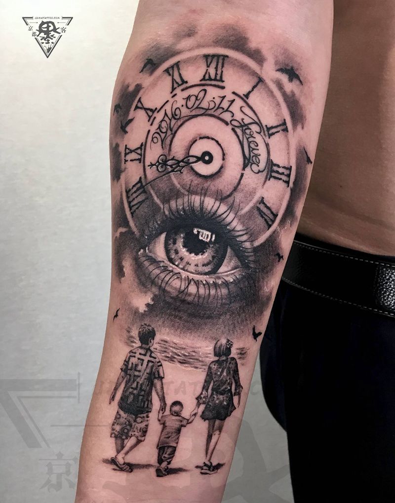 • T家庭图,一家四口生日纪念!纹身图片_手臂纹身图案