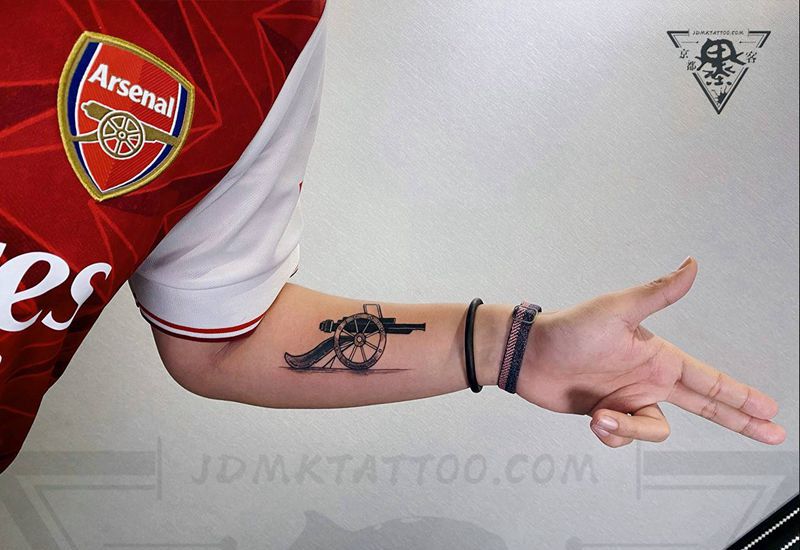 当前位置: 首页 >北京市纹身店-京都墨客刺青纹身图案>纹身/刺青纹身图片_手臂New School水墨枪手大炮纹身图案