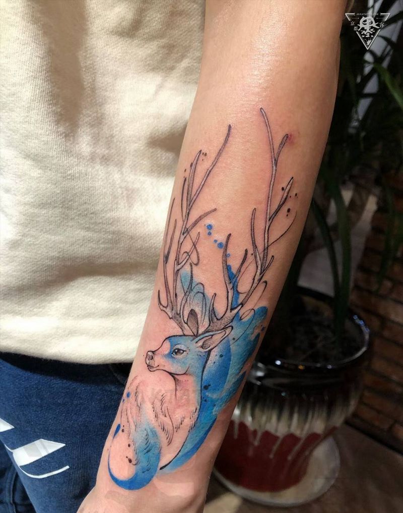 当前位置: 首页 >北京市纹身店-京都墨客刺青纹身图案>纹身/刺青纹身图片_手臂水彩水墨鹿纹身图案