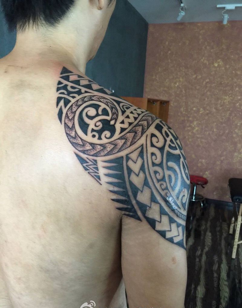 • 纹身吧推荐的披肩图腾半胛纹身图案作品展示