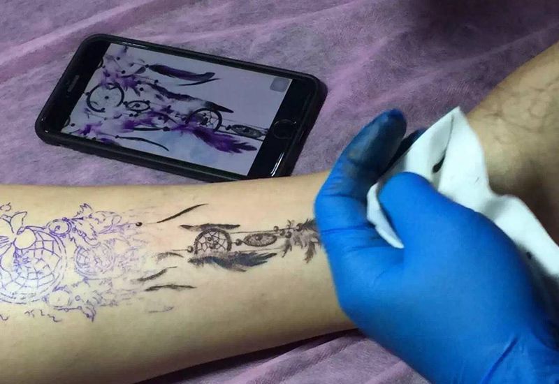 京都墨客刺青-徐老师纹身图片_成品手臂清新捕梦网纹身图案