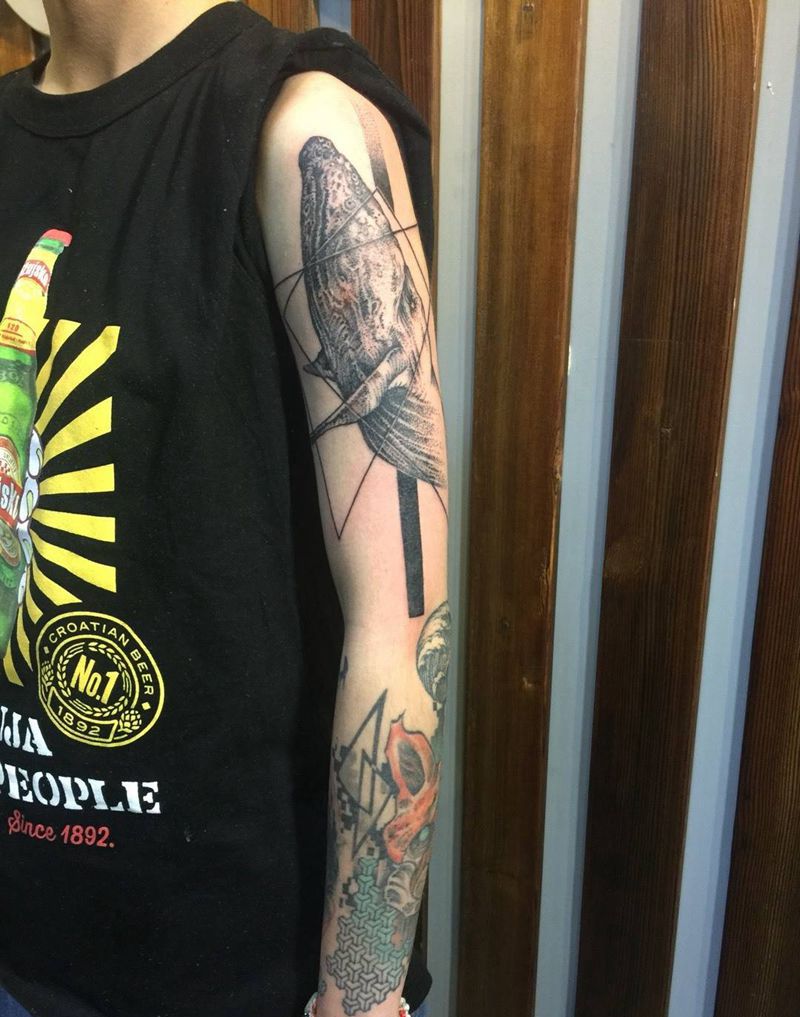 京都墨客刺青--鲸鱼作品纹身图片_成品手稿手臂纹身图案
