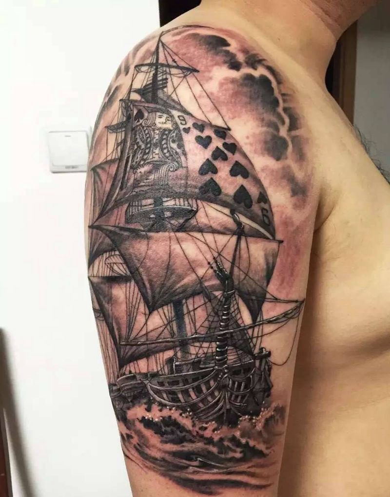 当前位置: 首页 >北京市纹身店-京都墨客刺青纹身图案>京都墨客刺青-徐老师纹身图片_成品原创帆船肩部纹身图案