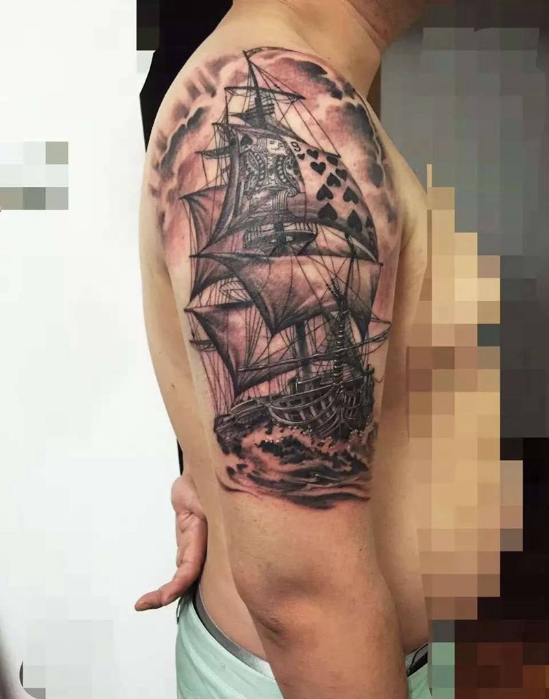 当前位置: 首页 >北京市纹身店-京都墨客刺青纹身图案>京都墨客刺青-徐老师纹身图片_成品原创帆船肩部纹身图案