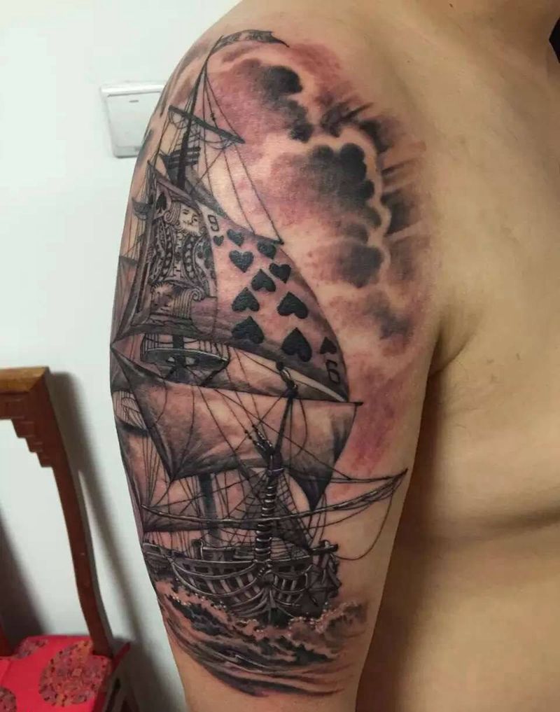 当前位置: 首页 >北京市纹身店-京都墨客刺青纹身图案>京都墨客刺青-徐老师纹身图片_成品原创帆船肩部纹身图案