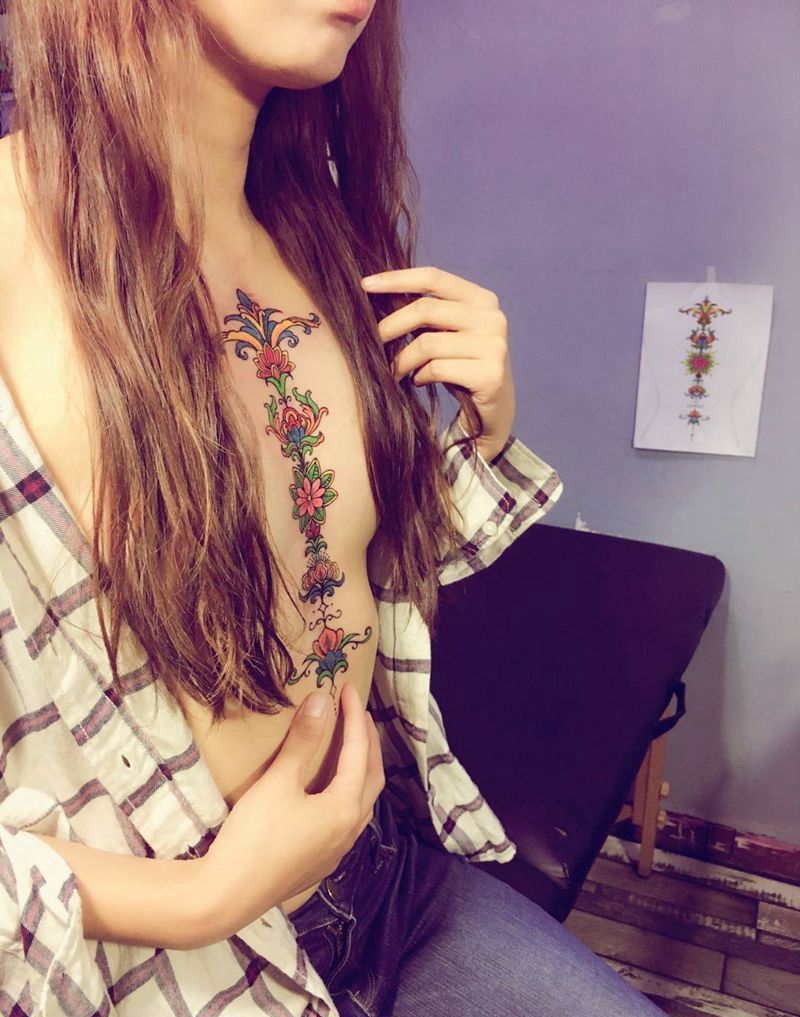 • 女性大花胸纹身_43张霸气漂亮的女性大花胸纹身图案作品