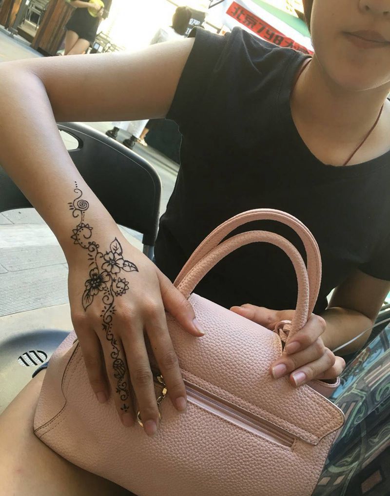 • 手背潮流时尚的玫瑰花眼睛纹身图案