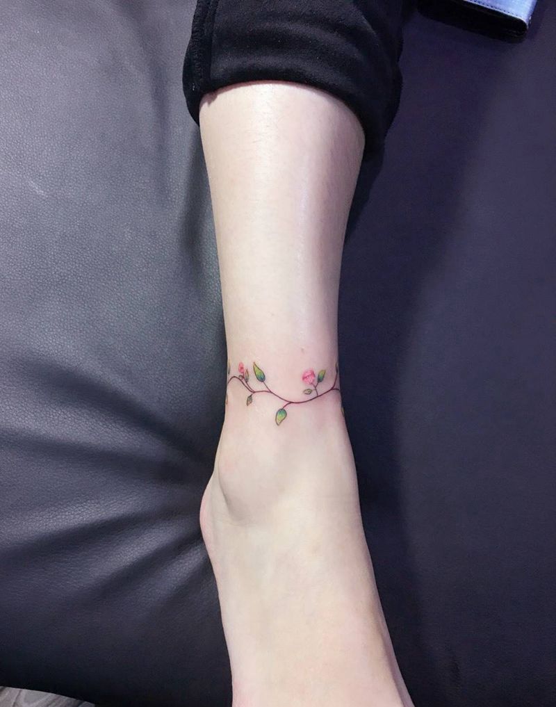京都墨客刺青纹身图片_成品手稿脚部清新植物纹身图案