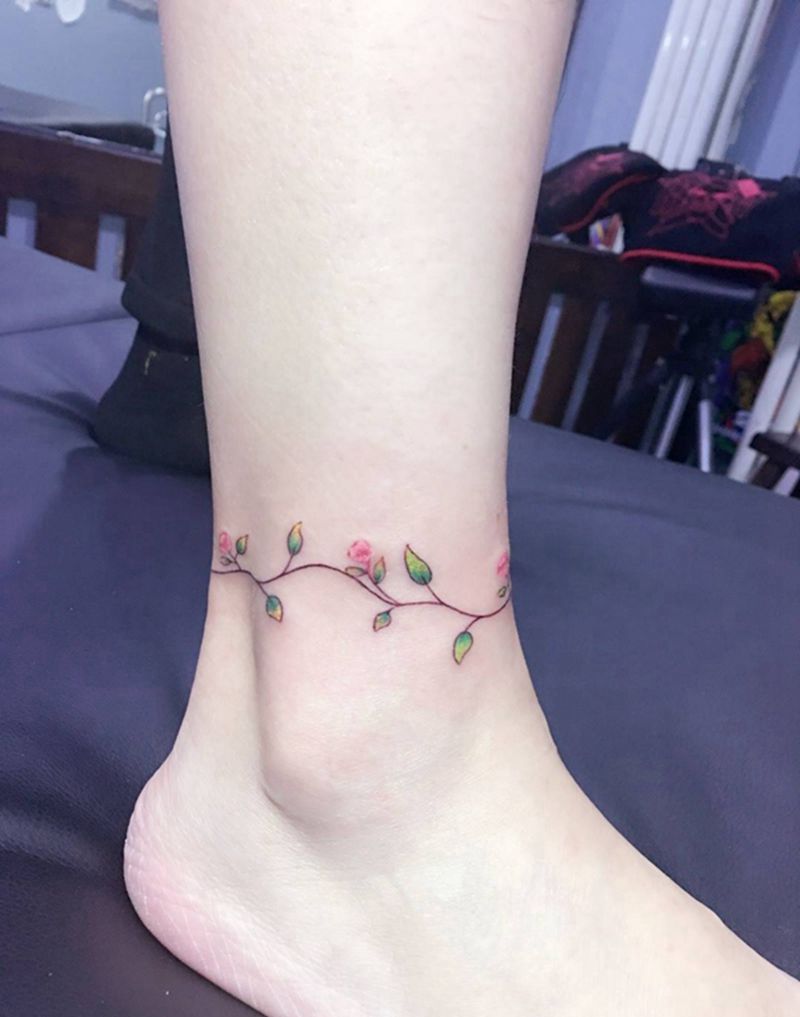 京都墨客刺青纹身图片_成品手稿脚部清新植物纹身图案
