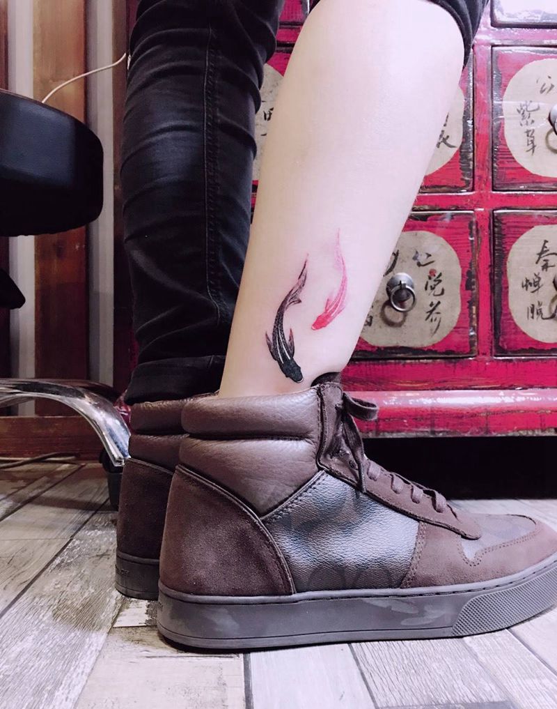 当前位置: 首页 >北京市纹身店-京都墨客刺青纹身图案>京都墨客刺青纹身图片_成品腿部背部莲花、鱼情侣清新纹身图案