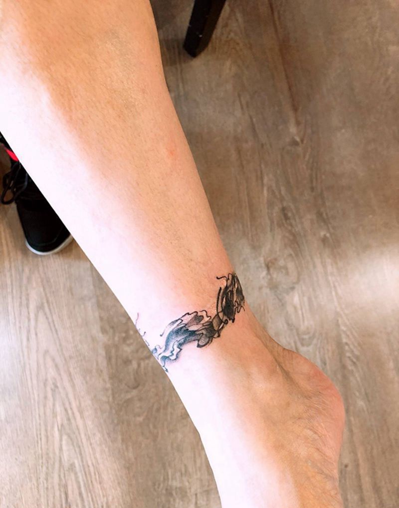 • T网红王老大花腿龙纹身图片_腿部新传统纹身图案