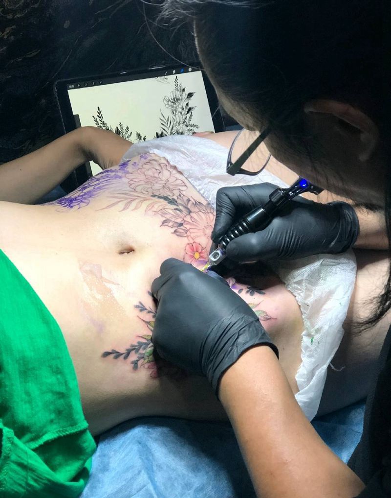 • 女性大花胸纹身_43张霸气漂亮的女性大花胸纹身图案作品