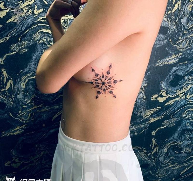 纹身/刺青/几何/点刺/雪花/纹身图片_胸部背部点刺几何小清新纹身图案