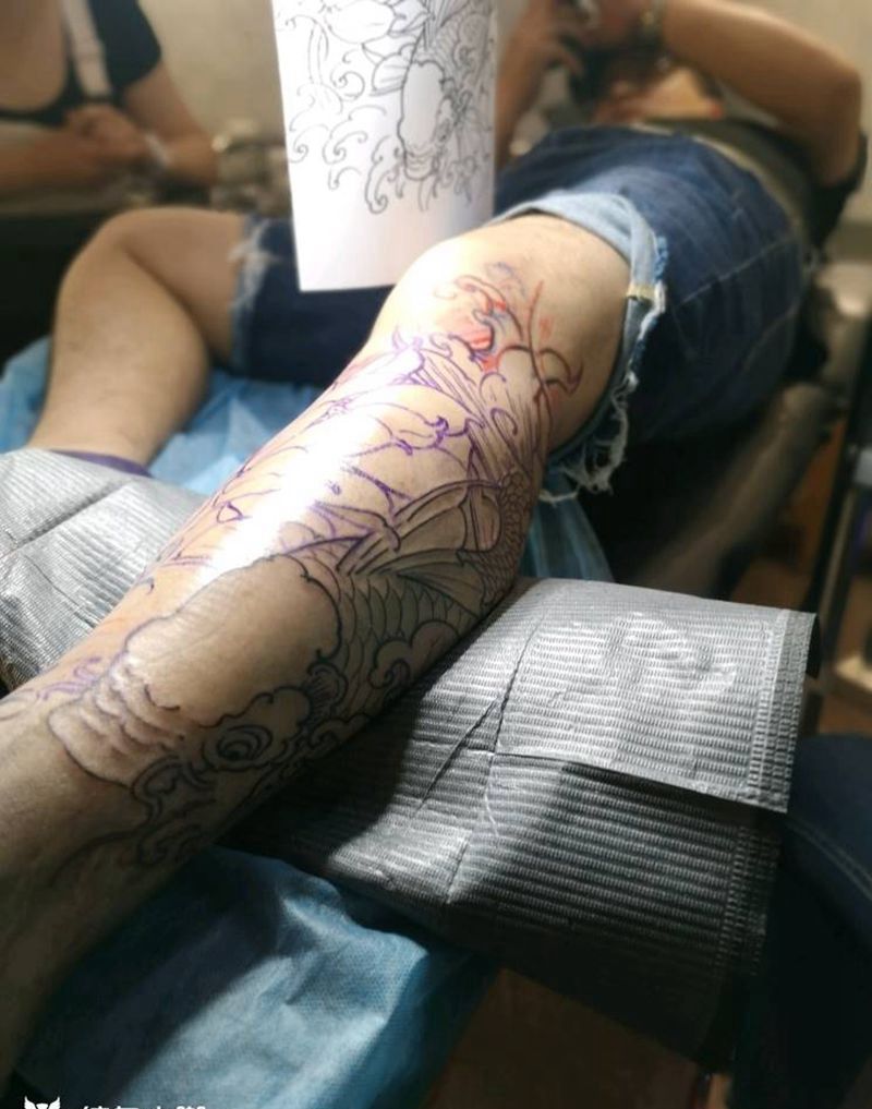 • T网红王老大花腿龙纹身图片_腿部新传统纹身图案